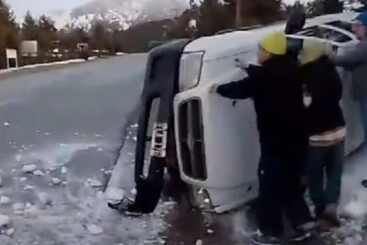 El conductor de una camioneta Ford Ranger perdió el control, golpeó de costado y terminó con su vehículo recostado. No hubo heridos y fuero auxiliados por otros conductores.
