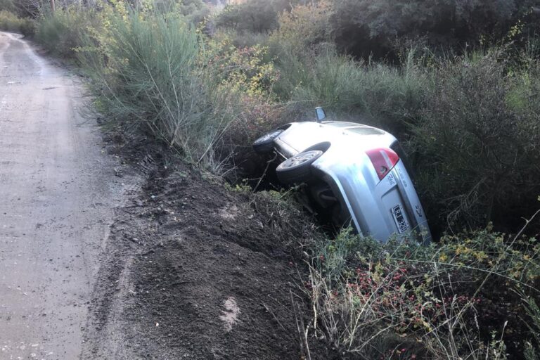 Un auto volcó en un camino de tierra de la zona oeste de Bariloche. Vecinos denuncian que la obra del complejo CAUMA desestabilizó el terreno y exigen medidas.